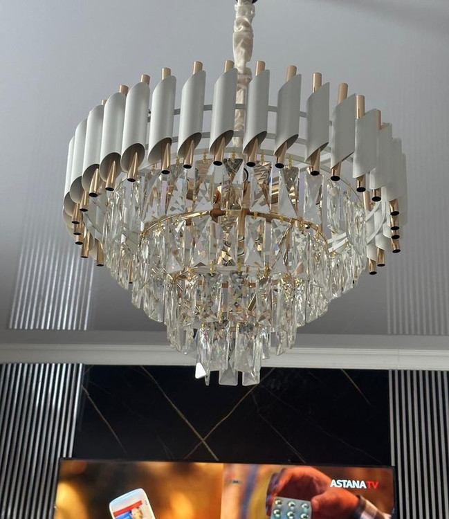 این لوستر کریستالی با طراحی چندلایه و مدرن، انتخابی ایدهآل برای فضاهای لوکس و دکوراسیونهای خاصپسند است.