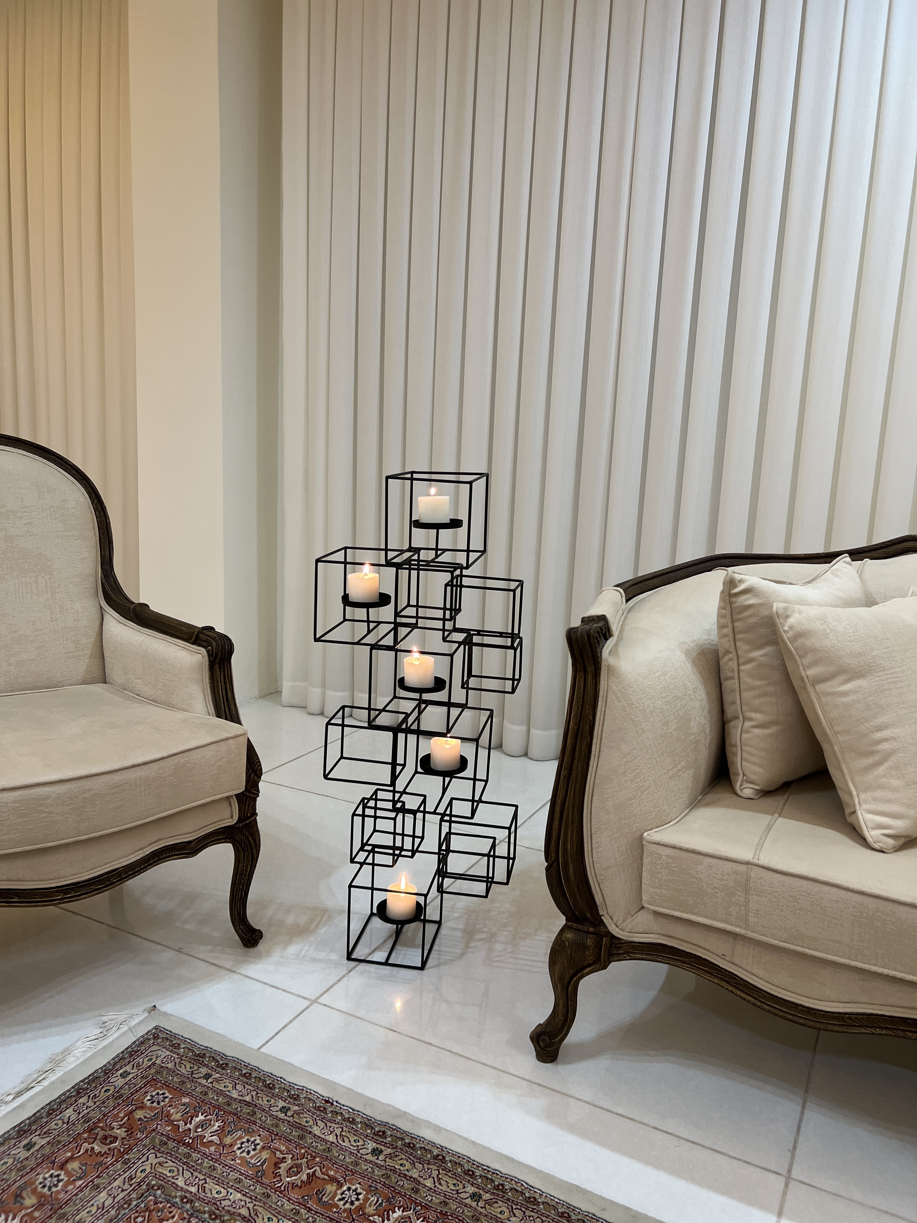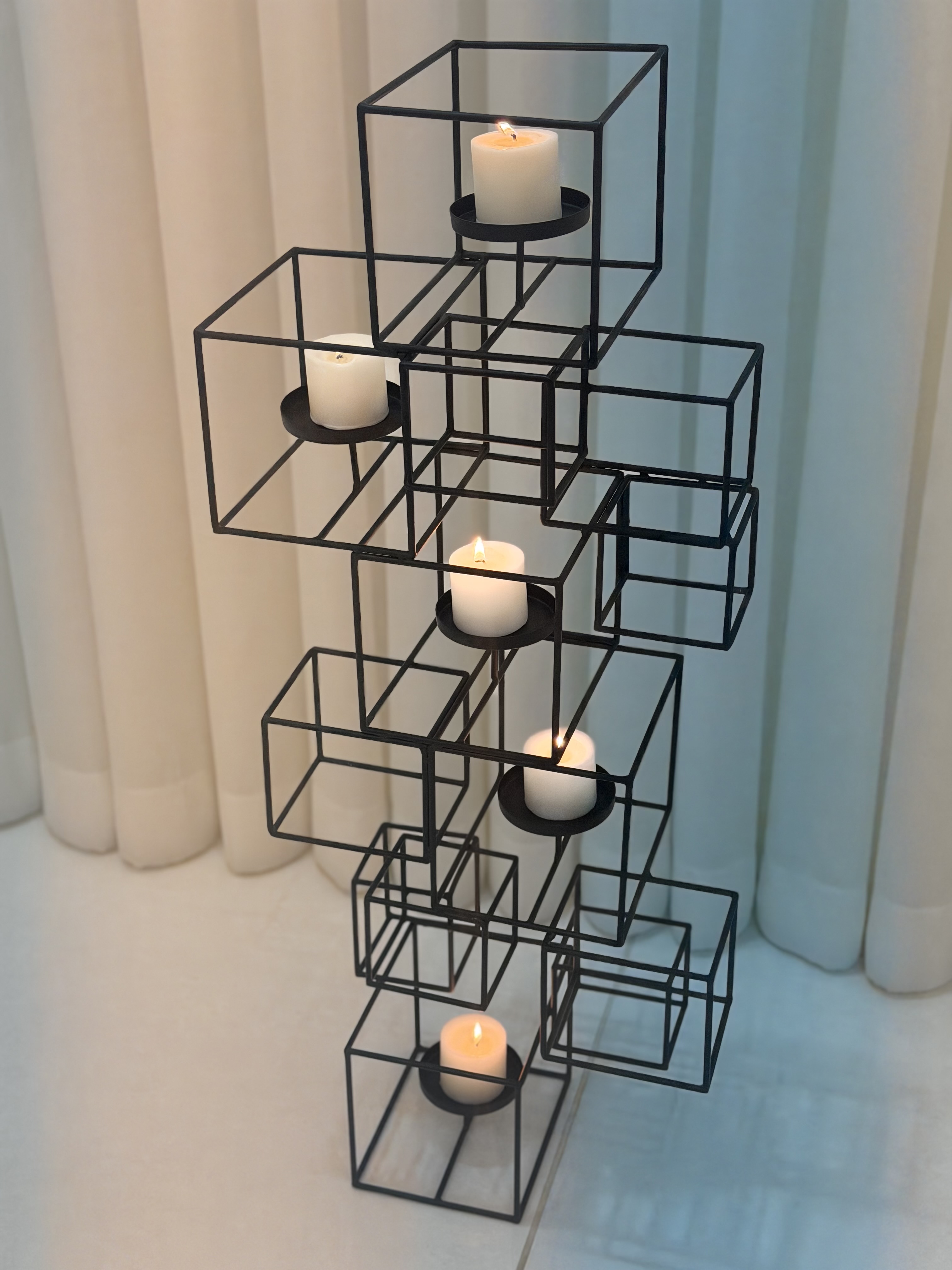 ترکیب خطوط فلزی مشکی با شمع، این آباژور رو به یه المان دکوری لوکس و متفاوت تبدیل کرده.