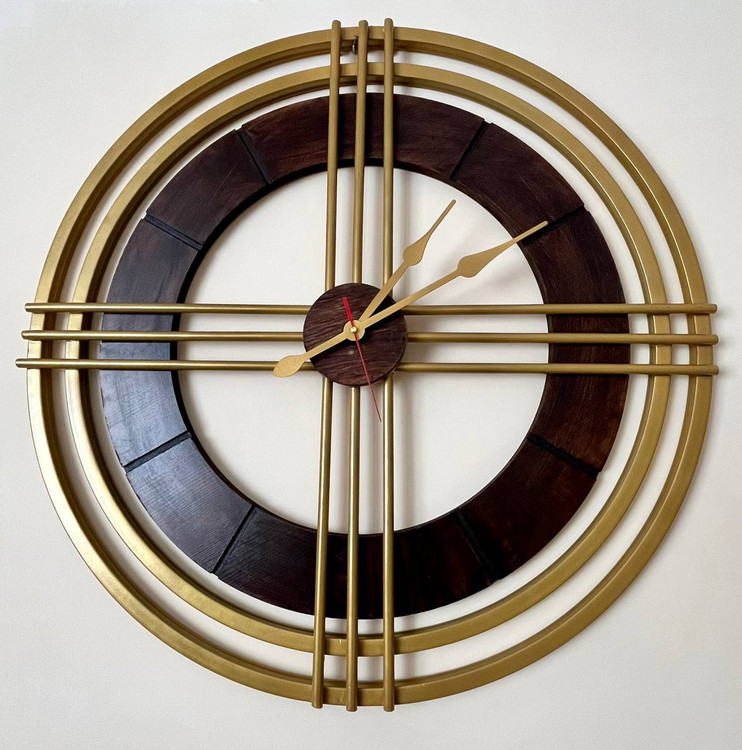 ترکیب هنرمندانهی فلز و چوب، این ساعت رو به یه اثر دکوراتیو چشمگیر تبدیل کرده؛